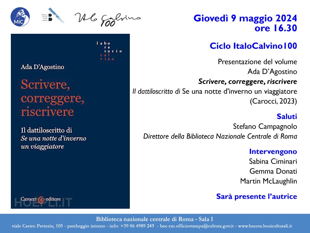 Presentazione del volume Scrivere, correggere, riscrivere. Il dattiloscritto di Se una notte d’inverno un viaggiatore di Ada D’Agostino (Carocci, 2024, Collana di studi del Laboratorio Calvino).